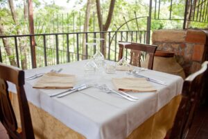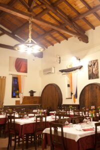 La famiglia Munforte accoglierà i commensali in un’ampia sala il cui verde delle pareti e la fantasia delle capriate in legno infonderanno lo spirito adatto per gustare tutte le prelibatezze che si avvicenderanno sulla tavola: zuppa di funghi, polpette di sparacogne, arrosto di suino nero dei Nebrodi, per citarne solo alcune.